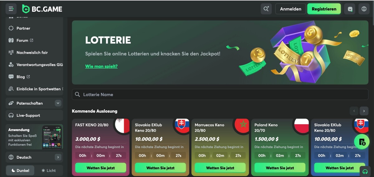 Das Spieleangebot ist üppig, Sportwetten sind leicht zugänglich und zusätzliche Möglichkeiten wie Lotterien haben für viel Aufsehen gesorgt. Die Zahlung mit Kryptowährungen ist absolut top. Wir nehmen diese Website genau unter die Lupe, um Spielern in Deutschland eine realistische Einschätzung geben zu können, wie gut BC.Game wirklich ist.