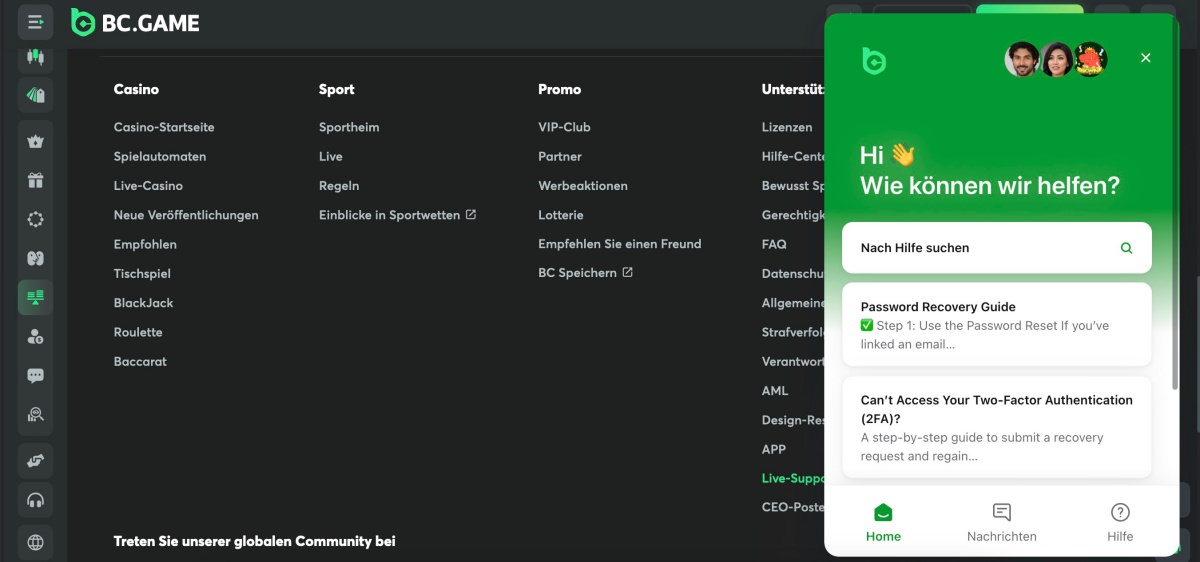 Der Kundenservice wurde von uns ausgiebig getestet, ist rund um die Uhr erreichbar. Die primäre Anlaufstelle ist generell der 24/7 Live-Chat, über den man fast immer schnell und unkompliziert Hilfe erhält. Wir haben selten länger als 10 Minuten gewartet. Zudem gibt es ein sehr umfangreiches Hilfe-Center (FAQ-Bereich), das die meisten allgemeinen Fragen bereits im Vorfeld behandelt und weiters viel Zeit ersparen kann.