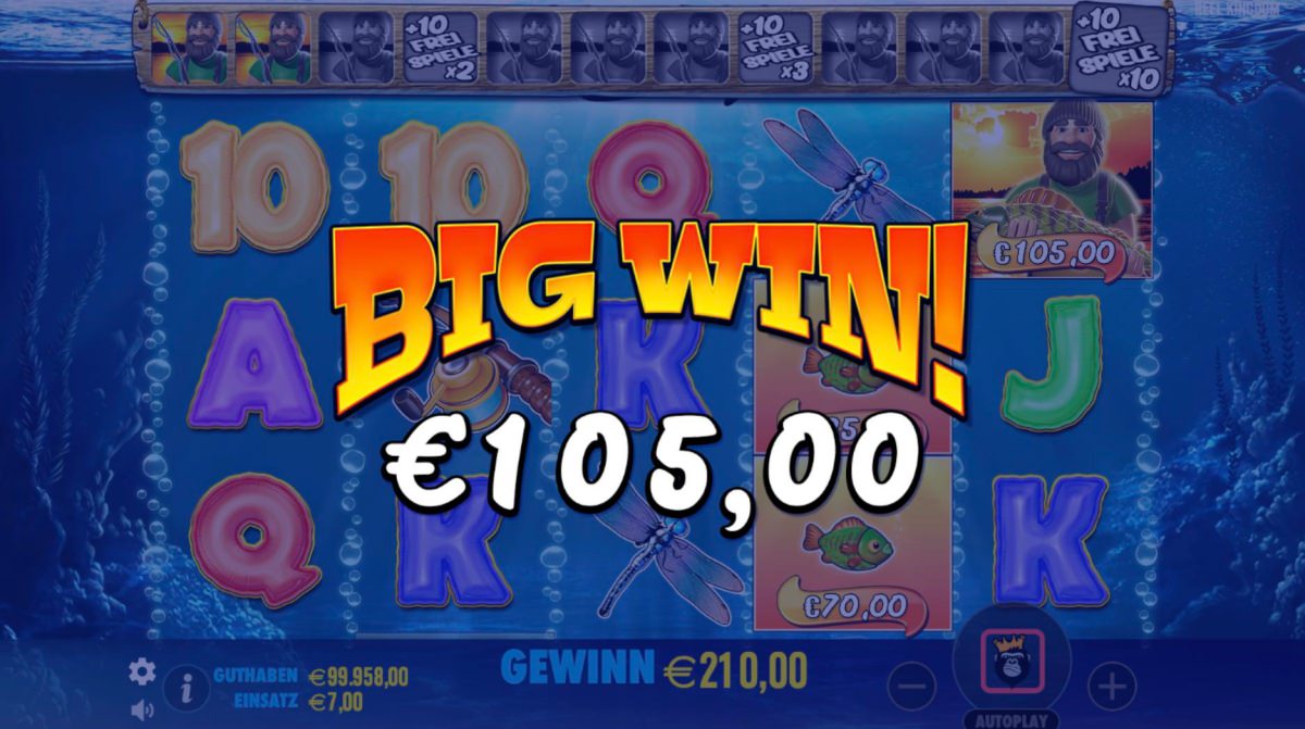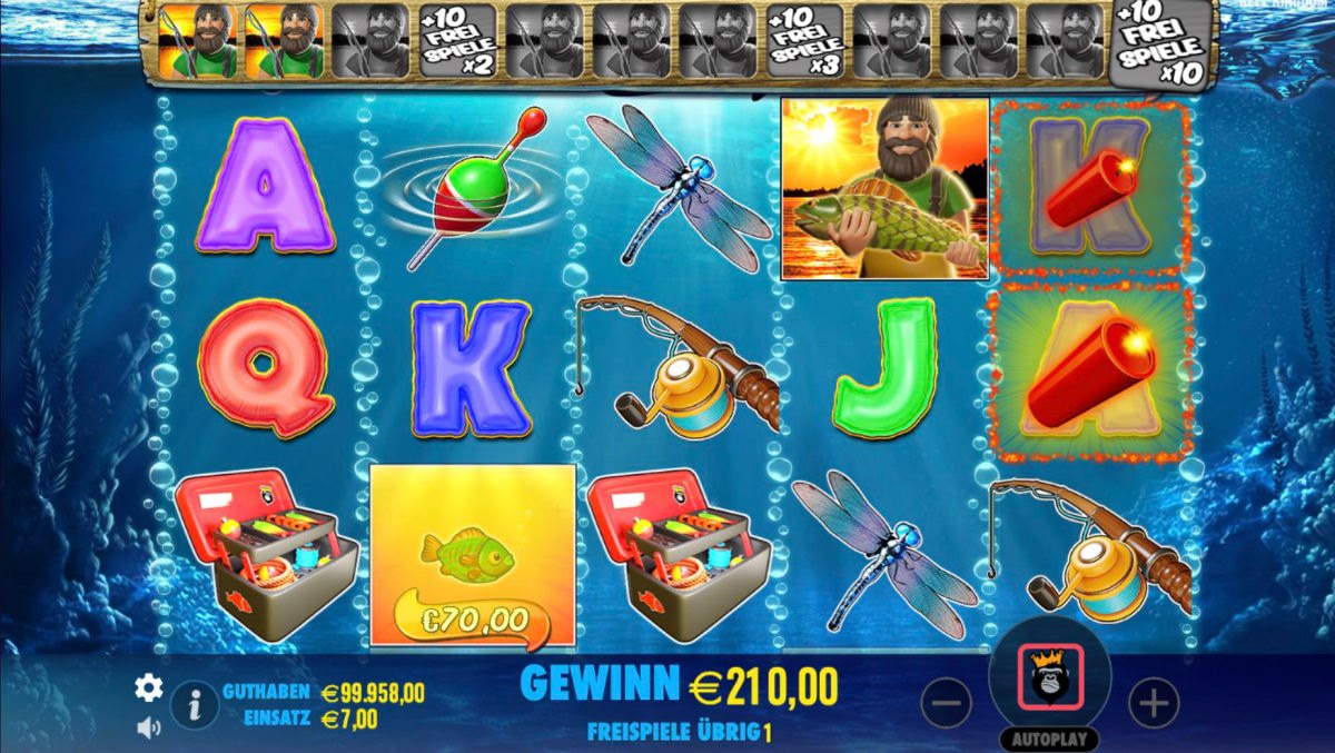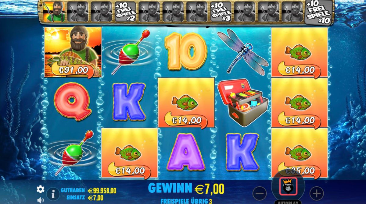 Der Angler erscheint nur in den Freispielen und sammelt die Werte aller Fischsymbole ein, die man im Spiel gesammelt hat. Es handelt sich dabei also um das Wildsymbol. Besonderen Grund zur Freude gibt es, wenn ein Fisch natürlich angebissen hat, was eine Freispielrunde auslöst.