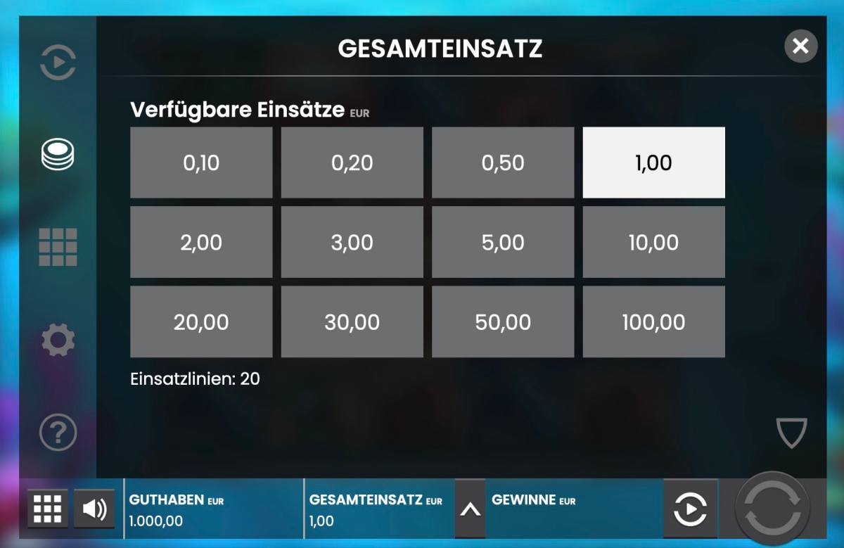| Gewinnlinien: | 20 |