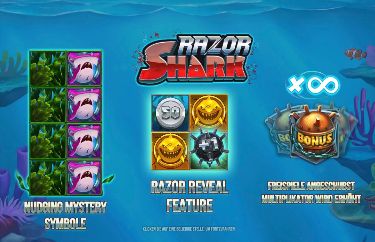 Besonders spannend an Razor Shark ist, dass es theoretisch keinen maximalen Gewinn gibt. Wenn Sie also auf den ganz großen Fischfang aus sind, dann ist das in Deutschland für Sie definitiv das Richtige.