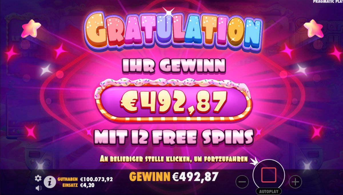 Wenn Sie ein Spieler sind, der innovative Spielsysteme schĂ€tzt, dann sollten Sie Sugar Rush jetzt kostenlos ausprobieren. Unser Test hat bewiesen, dass das Spiel richtig Spaß macht, faire Gewinnchancen bietet und fĂŒr nachhaltige Unterhaltung sorgt. Nutzen Sie unsere Demo, um kostenlos Sugar Rush zu spielen. Auch wenn Sie schließlich um EinsĂ€tze spielen möchten, haben wir einige Anbieter fĂŒr Sie vorweg getestet, die Ihnen eine tolle Experience bieten.
