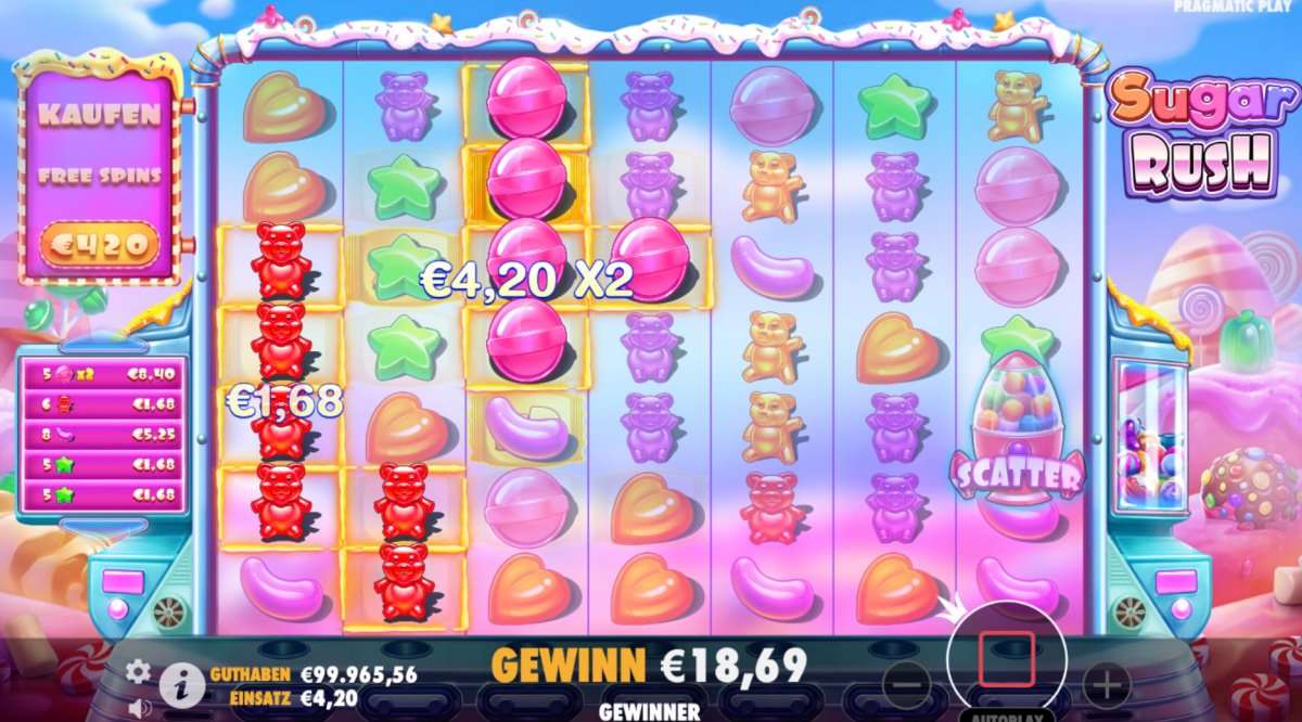 Tauchen Sie ein in die kunterbunte Welt von Sugar Rush – dem Pragmatic Play Slot, der Deutschland im Sturm erobert hat! Wir zeigen Ihnen warum. Wenn es so farbenfroh zugeht, wie bei diesem beliebten Slot, das Pragmatic Play entwickelt hat, dann kein Wunder. Bei uns wird das Spiel gratis zur VerfĂŒgung gestellt – erfahren Sie hier alles auch ĂŒber die Möglichkeiten, wie man dieses Spiel mit Echtgeld nutzen kann.