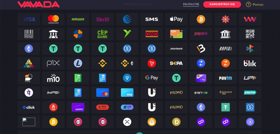 Vavada oferuje różnorodne opcje doładowania konta i wypłaty wygranych. Docenić warto dostępność BLIKA oraz kryptowalut, ale jednocześnie brakuje portfeli Skrill i Neteller.