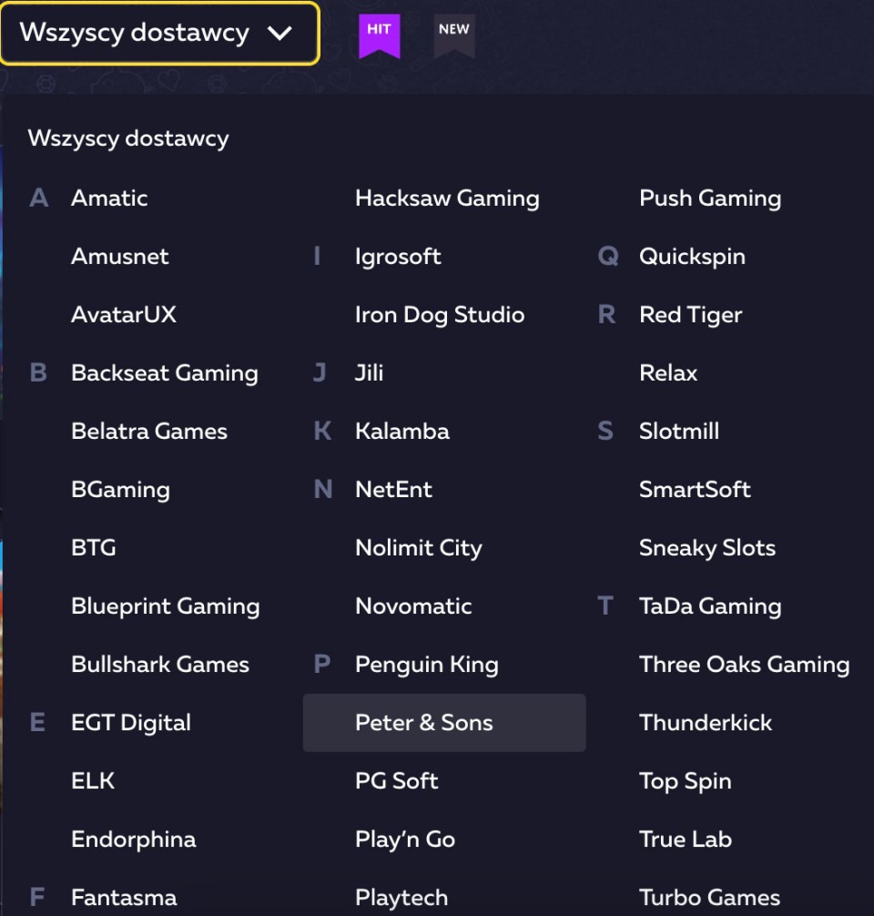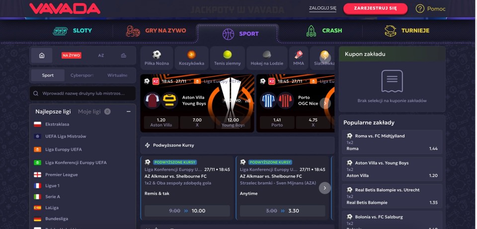 | Rodzaje gier | sloty online, gry stołowe, gry karciane, gry błyskawiczne, gry na żywo i zakłady sportowe |