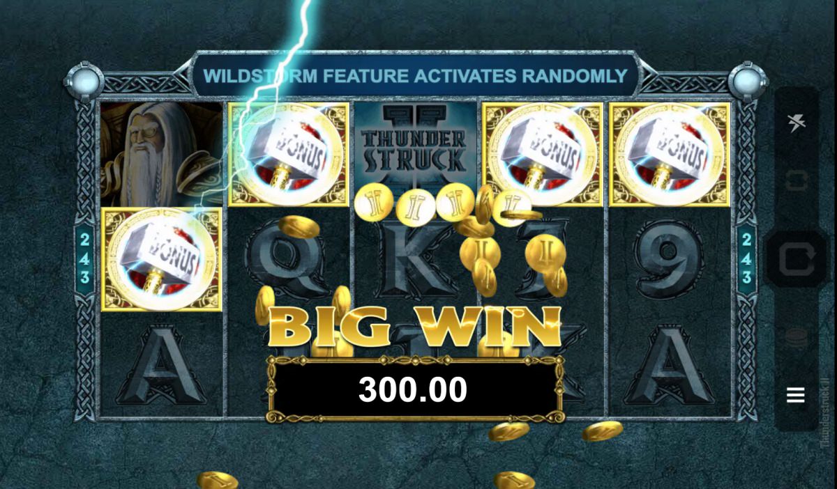 Numerous thrilling bonus elements in Thunderstruck II improve gameplay and increase the possibility of large wins. The Great Hall of Spins, a multi-level free spins feature that gives players ever more potent bonuses the more they activate it, is the main draw. Furthermore, the Wildstorm Feature provides the possibility of full-reel wilds, which can result in enormous rewards.